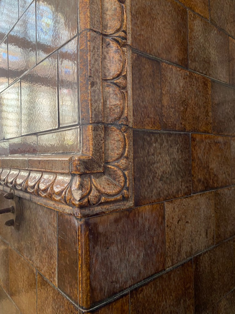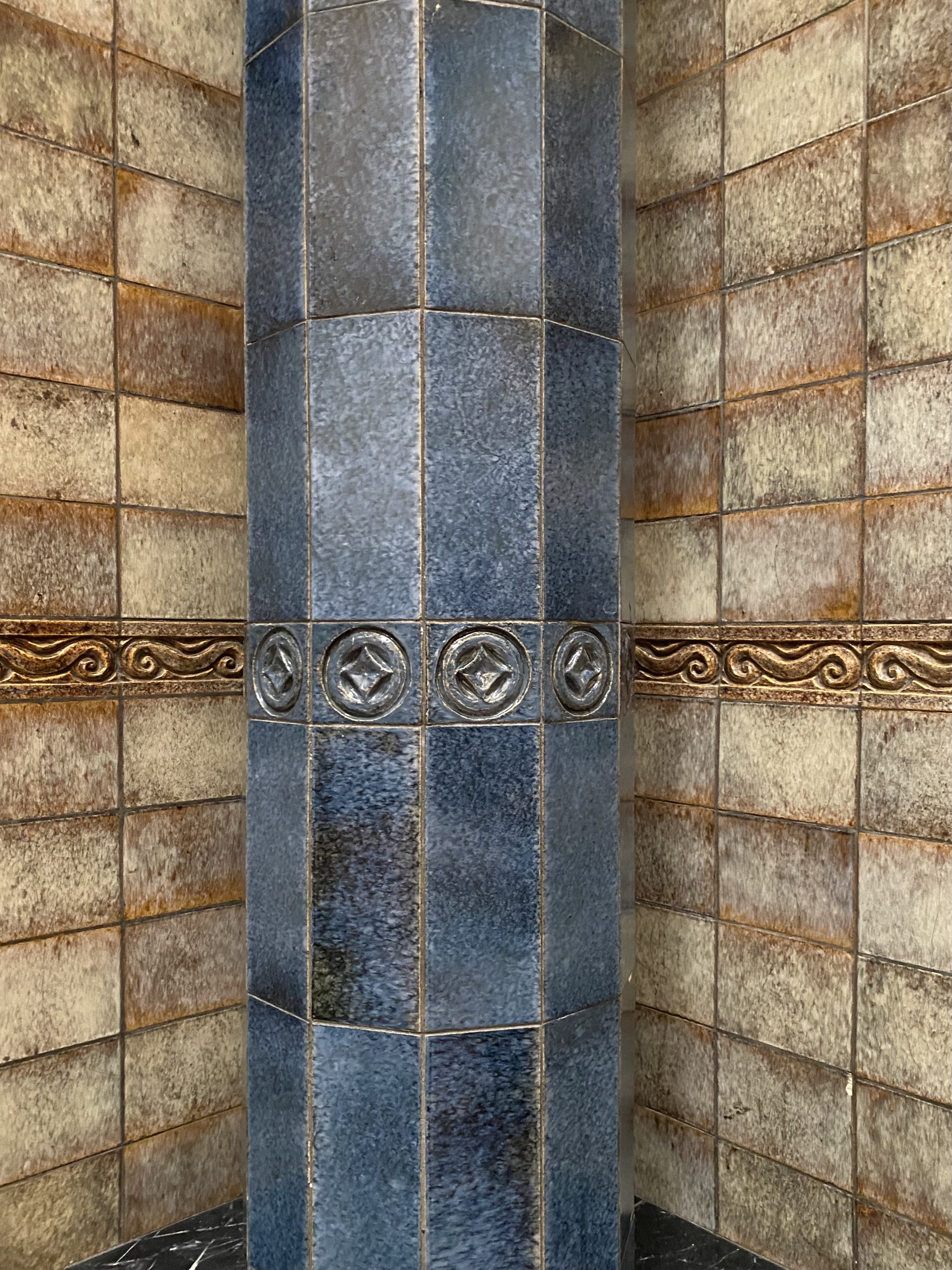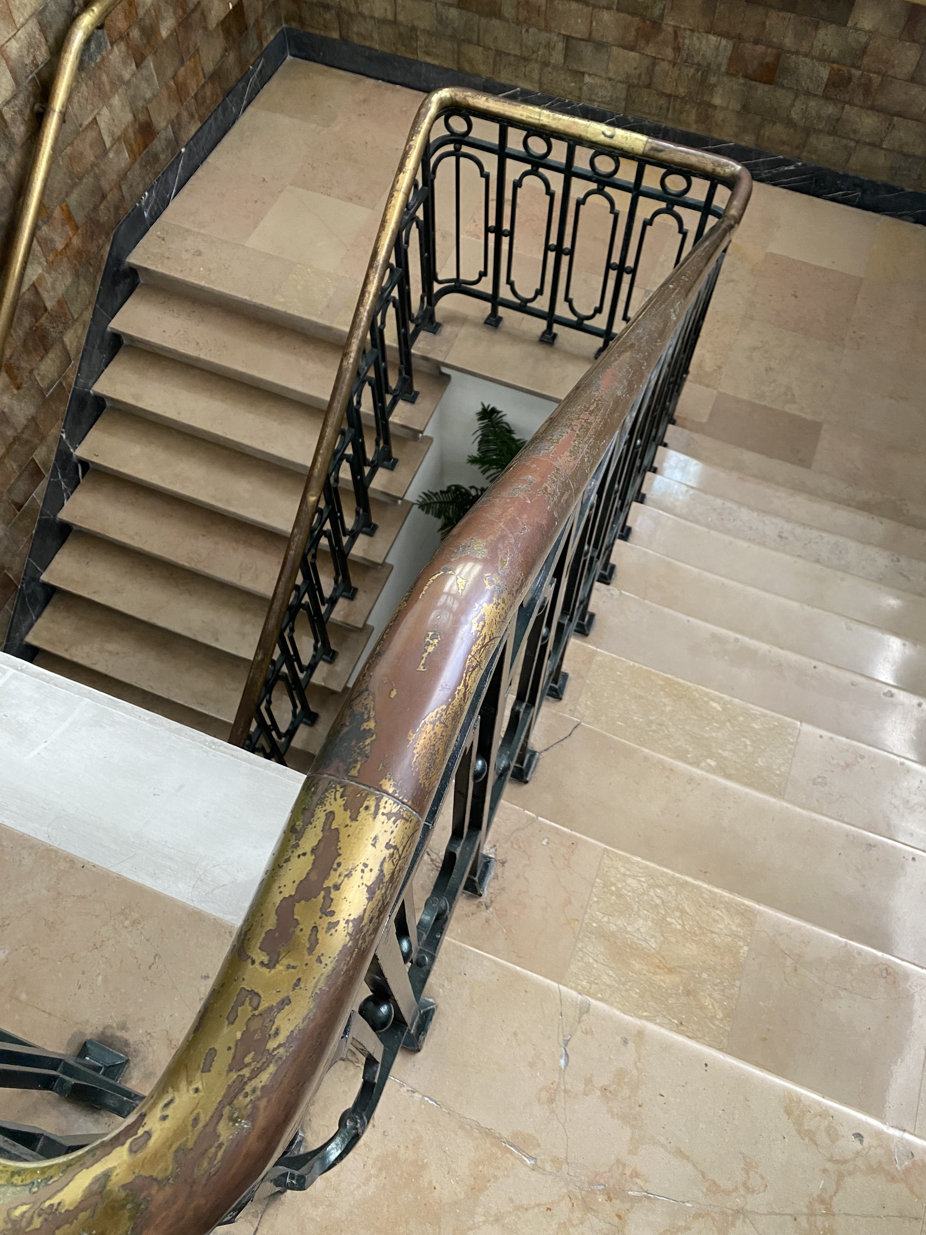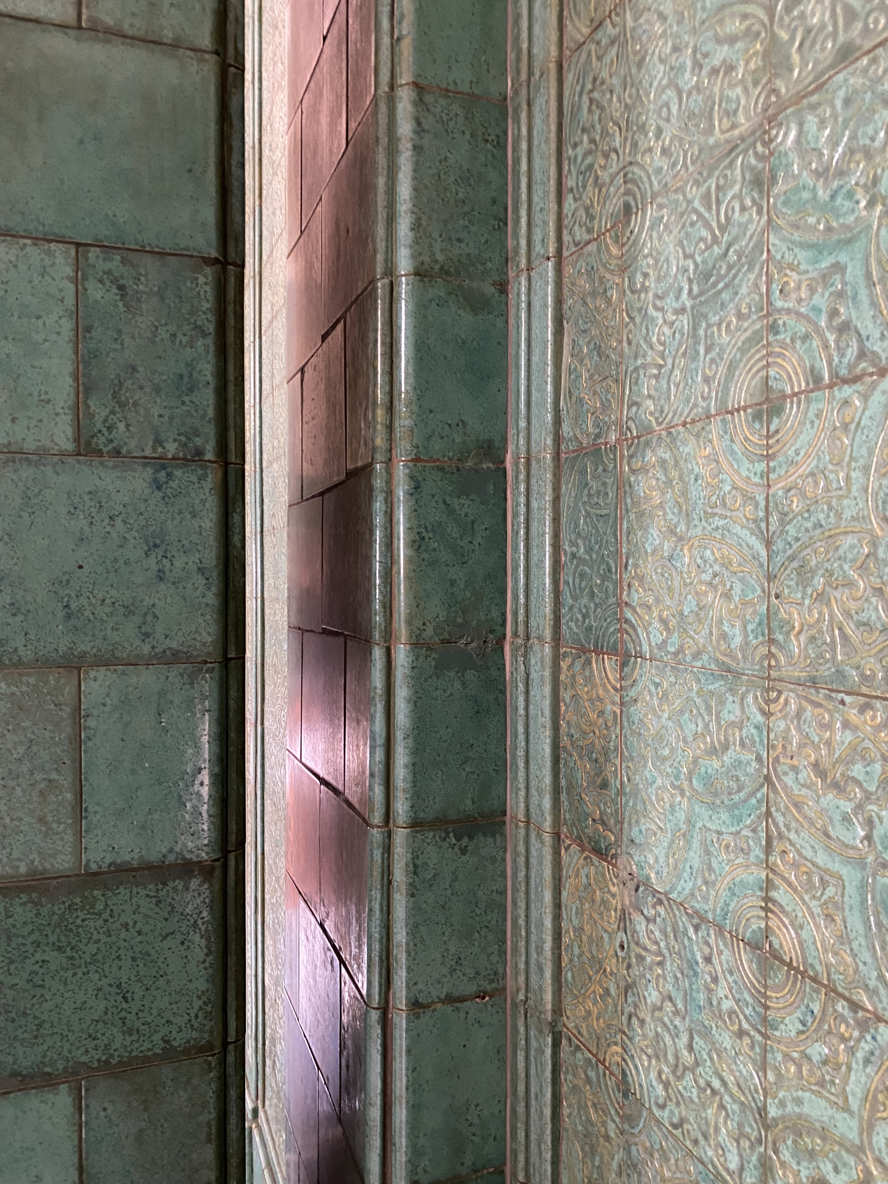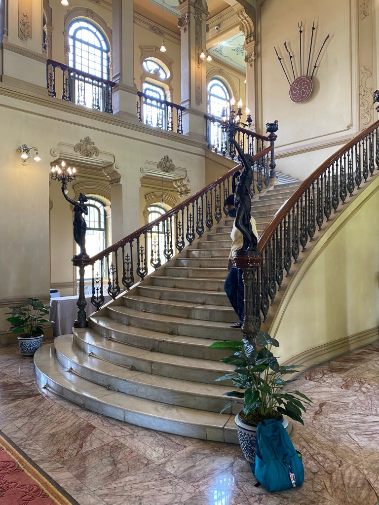 Bagian lobby, terletak di tengah bangunan, ketika memasuki bangunan ini akan disambut tangga dengan railing besi dan pilar keramik glasur, indah sekali, dan ketika kita menengok ke belakang akan terlihat deretan kaca patri indah, menurut catatan di MuBI, ada sekitar 314 kaca patri di gedung ini dan semua dibuat di atelier Jan Schouten, Delft, Negeri Belanda pada 1922 – 1935, permukaan kaca dibuat tidak teratur, untuk membiaskan warna terutama ketika cahaya matahari menerpa bagian gedung.
