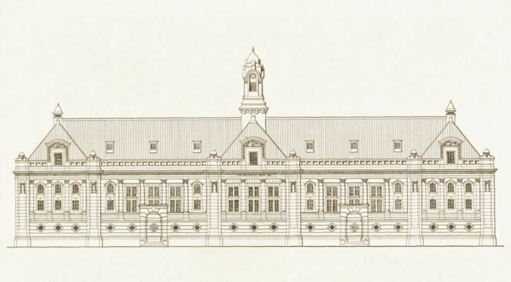 Di lihat dari gambar dari sumber seperti Troppenmuseum/KITLV dibagian tengah terdapat menara dan facade nampak lebih tinggi dengan bagian depan tanpa portico, dan nampak nya akses ke dalam gedung di dari dua pintu besar di kanan kiri dengan kanopi melengkung (photo dibawah dari koleksi Troppenmusem kemungkinan diambil sekitar 1920an, masih dengan desain awal).