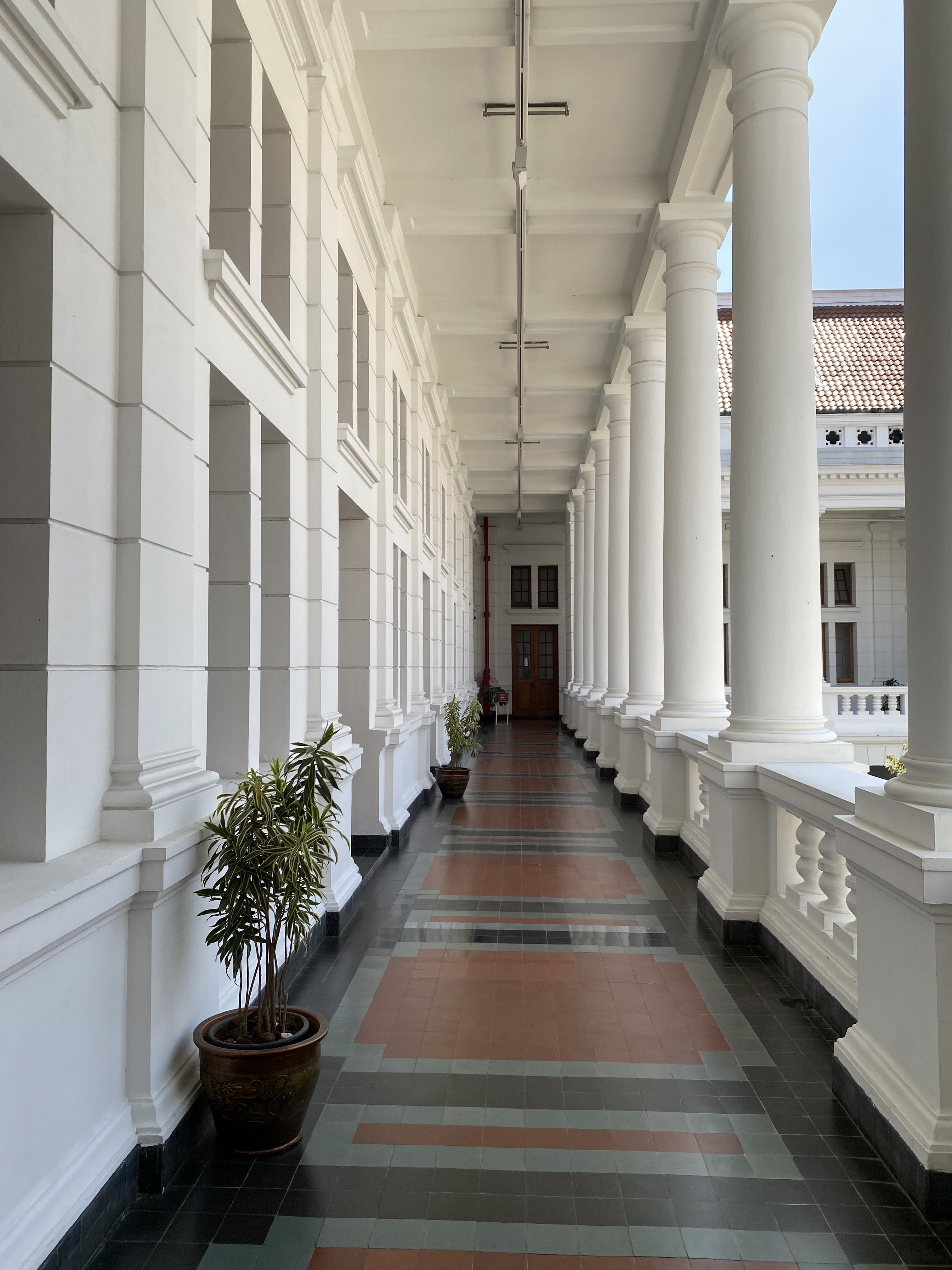 Lorong-lorong panjang terbuka menghadap ke inner court, dihiasi pilar-pilar tinggi dan dibeberapa pilar terdapat ornamen berupa keramik berglasur, hal yang jangan dilupakan untuk diperhatikan ketika mengunjungi Museum Bank Indonesia ini.