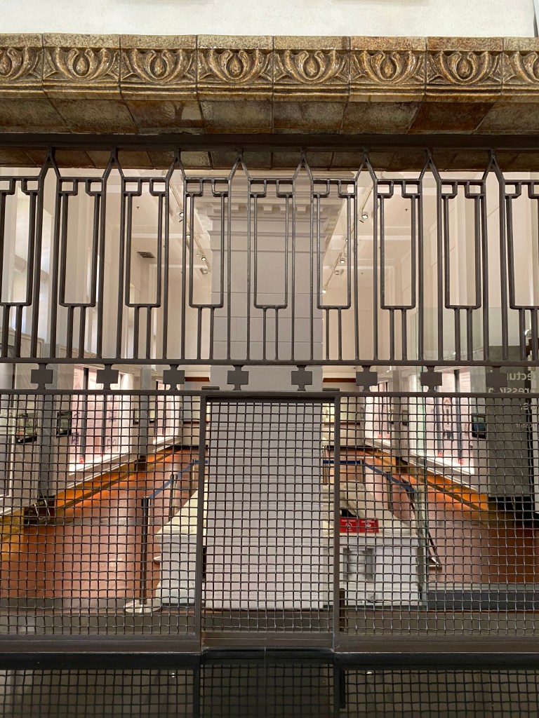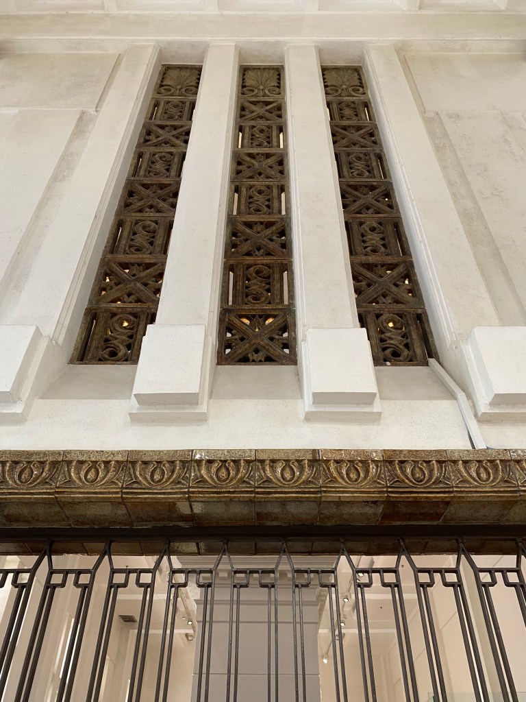 Bagian akhir dari perjalanan di MuBI ini adalah area dimana dahulu merupakan area yang sama dengan ketika kita memulai perjalan menyusuri bangunan ini yakni area teller, hanya saja di area akhir terdapat area display tentang seluk-beluk bangunan ini, seperti maket gedung, ornamen, kisah tentang arsitek, dan kemudian kita akan masuk ke area cinderamata yang merupakan area teller pada masa lalu, perhatikan bagian jeruji dan bagian dinding juga kaca patri disini, indah sekali.
